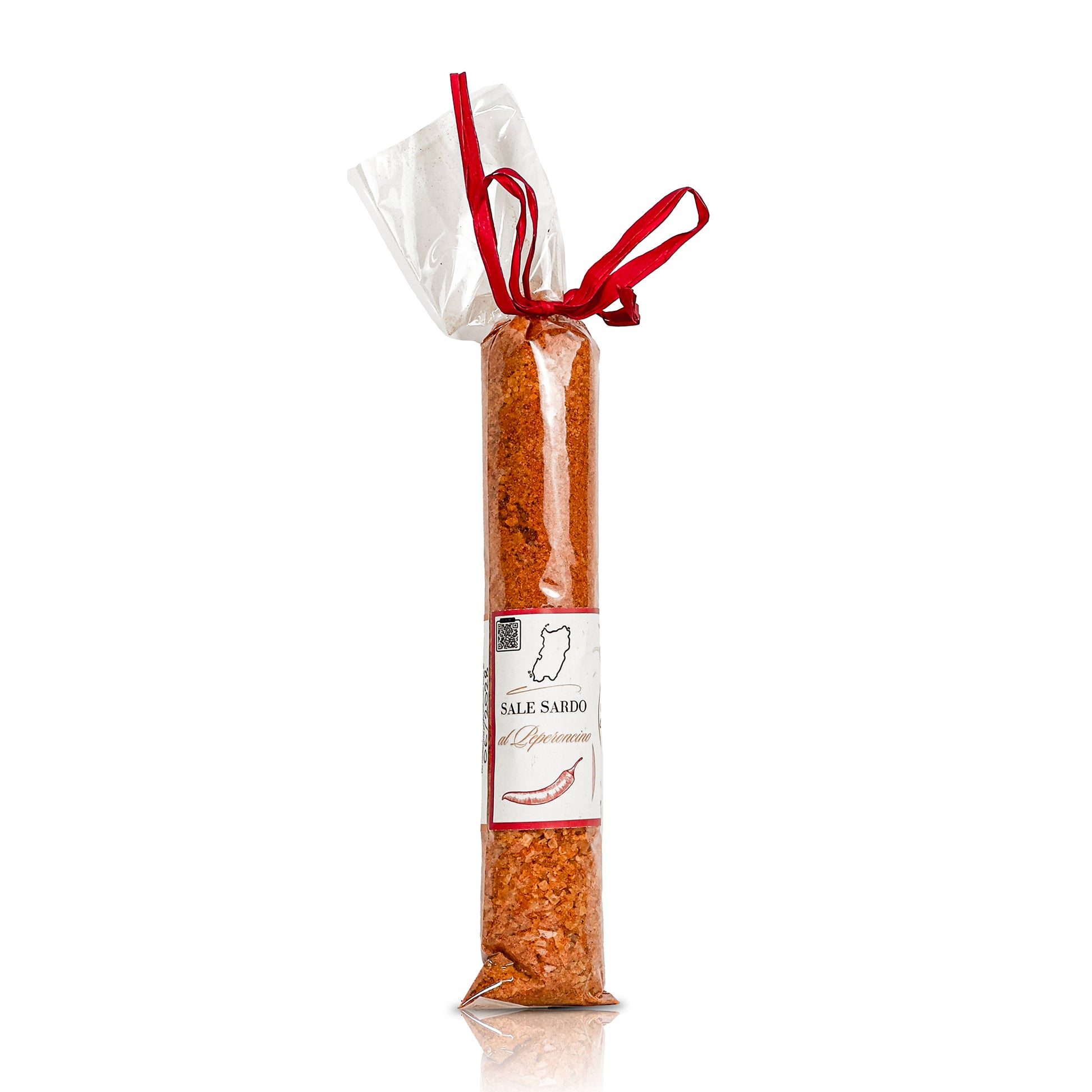 Le sel de piment chili combine la saveur épicée du piment avec du sel de mer sarde, sans additifs. Parfait pour ajouter une touche vivante aux pâtes, pizzas, viandes grillées et légumes, créant des plats avec une saveur audacieuse.