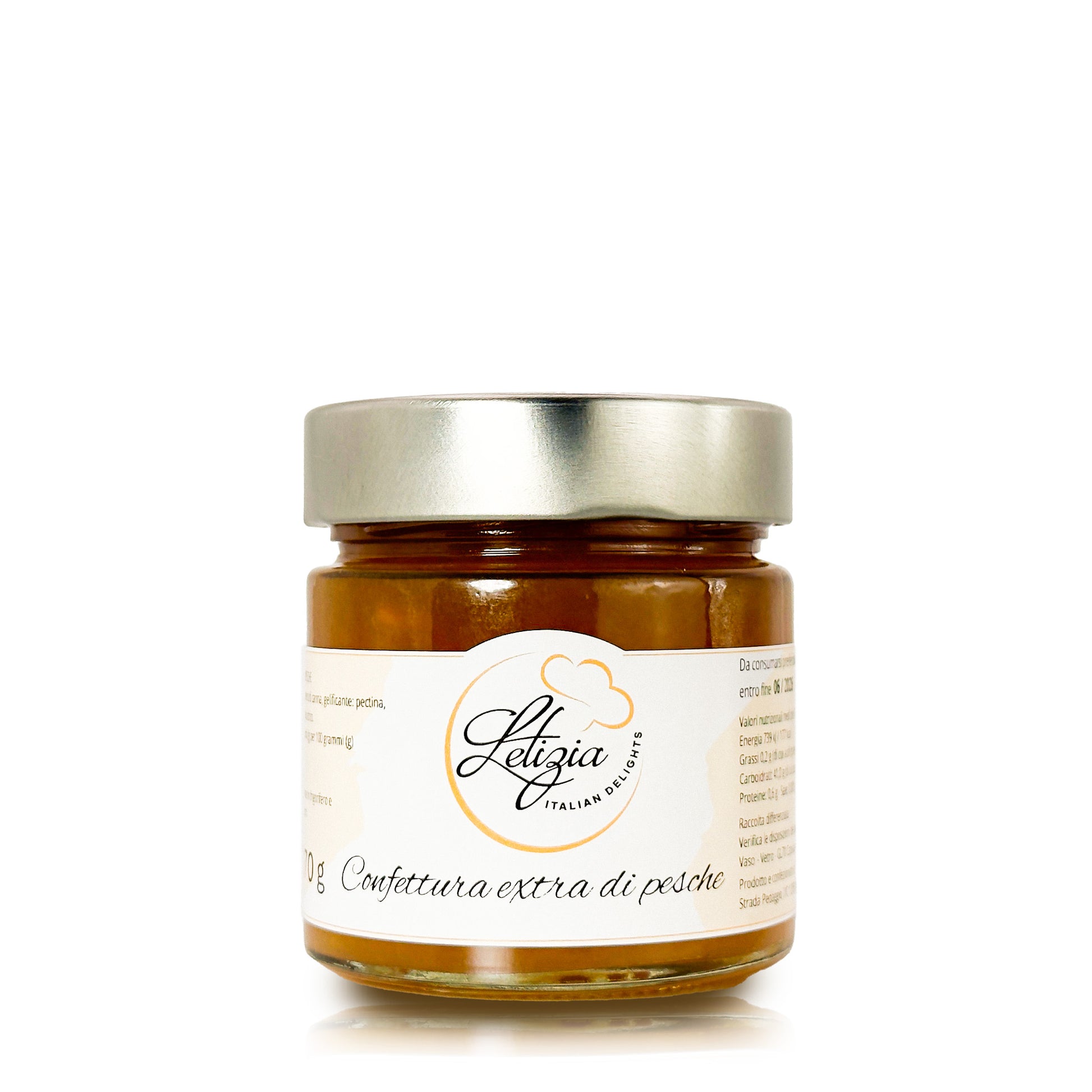 A burst of natural sweetness, this peach jam is made with carefully selected ripe fruit. Perfect for breakfasts and snacks, it brings the taste of summer to every spoonful.