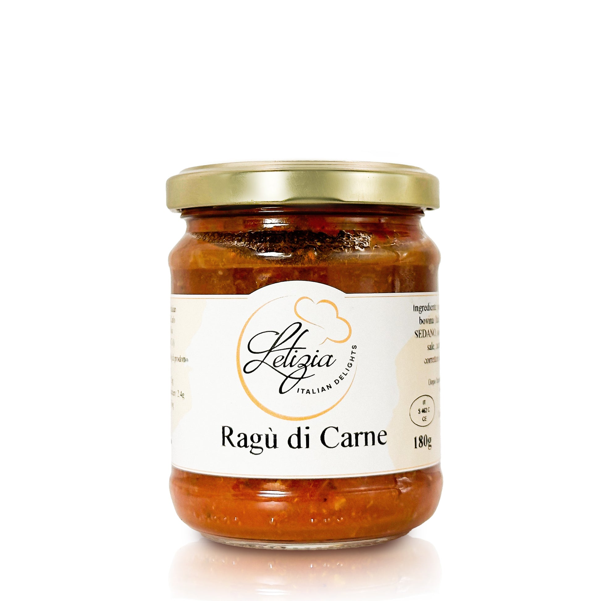 Italian tomato, beef (Italy) 33%, onion, carrot, celery, extra virgin olive oil, salt, sugar, aromatic herbs, acidity regulator: lactic acid.