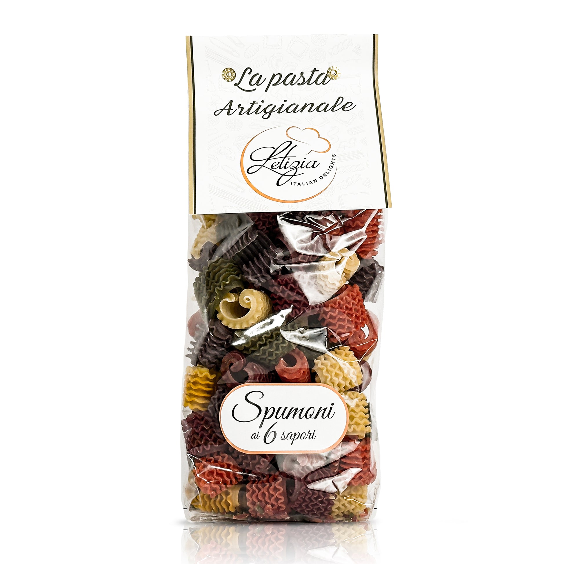 For a colorful and tasty dish, pair the multicolor spumoni with your favorite sauce, or simply with butter and grated cheese to highlight their lively flavor.